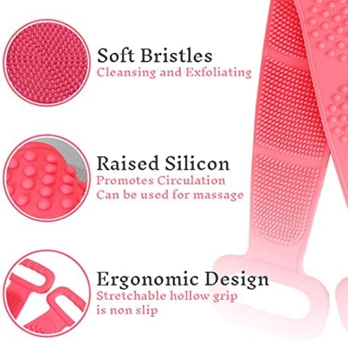 • Silicone Bath Body Brush Long Exfoliating Back Scrubber Massager Exfoliating Towel Shower Strip