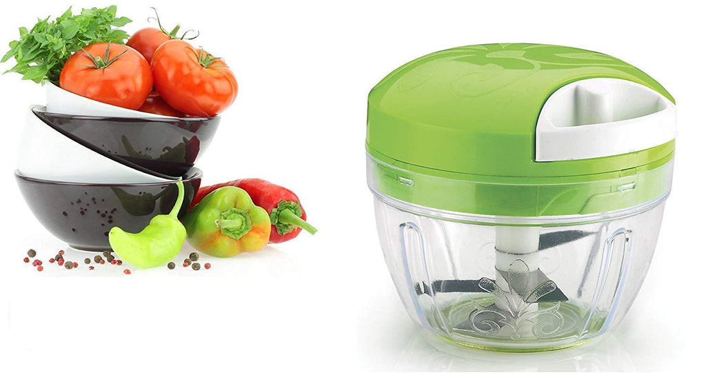 The New Handy Chopper is an excellent affordable solution to all of your fruit and vegetable chopping needs. Featuring three sharp and durable stainless steel blades and a unique string design, this manual chopper chops and cuts vegetables in a hassle-free manner with minimal effort. Simply cut the fruits or vegetables to a medium size before placing them in the chopper and get an evenly chopped version for your salads, fruits, Vegetable preparations and other cooking purposes.