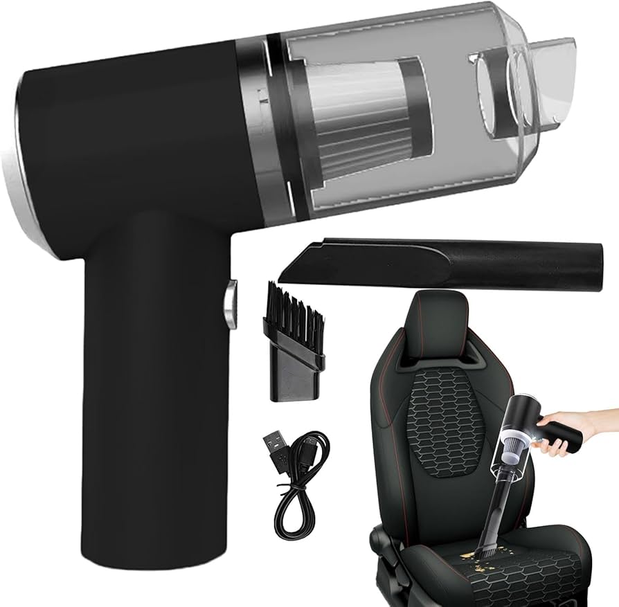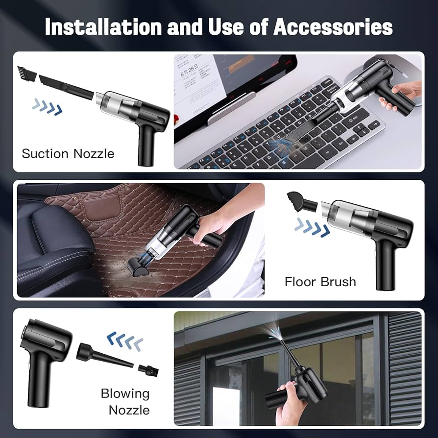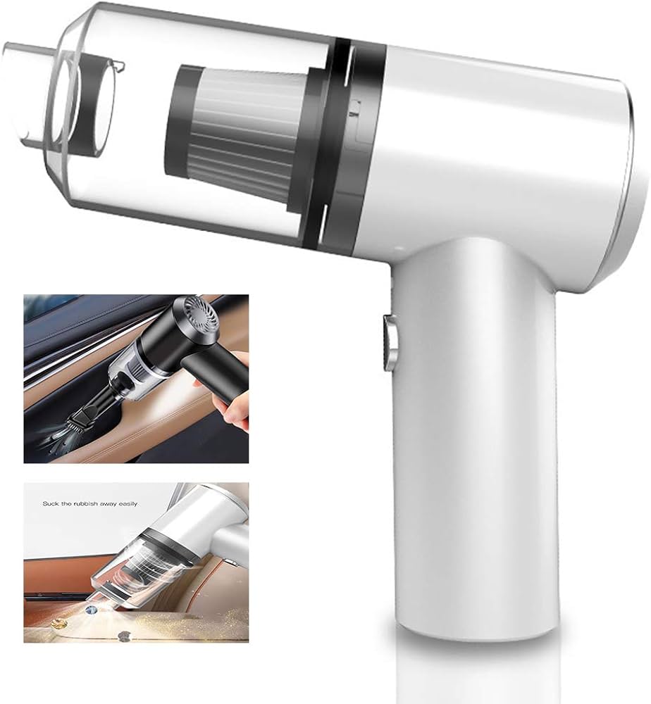 USB Rechargeable. Charges via Laptop/PC/Power Bank/USB Charger/Wall Charger. Easy to Use , convenient and versatile charging options for power on the go. Exclusive Rotating Car Vacuum Cleaner: Compact size with powerful variation and fun. Lithium-ion technology ensures powerful suction and fade-free, long-lasting performance. Multi-Purpose 2-in-1 Handheld Vacuum Cleaner: Suction and blow functions with LED light to illuminate corners. Powerful suction absorbs all types of debris, creating a comfortable home and car environment. Multiple Nozzles Allow You To Replace And Use At Any Time, Reusable And Cleanable Eco-Friendly Design Recycling Washable Heap Filter, Adopts Abs Thermoplastic Polymer Material With Good Toughness, Dust Blowing Design. Lightweight & Portable :- This mini size hand vacuum weights 12 ounces, holding long time without feeling tired, making cleaning a pleasure. Vacuum filter is washable and reusable. Bright LED light helps to clean dark corners.