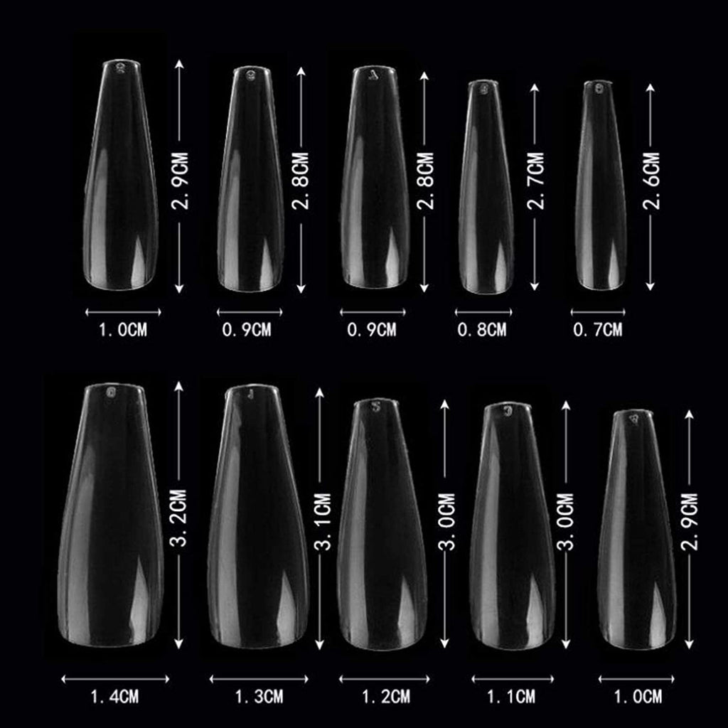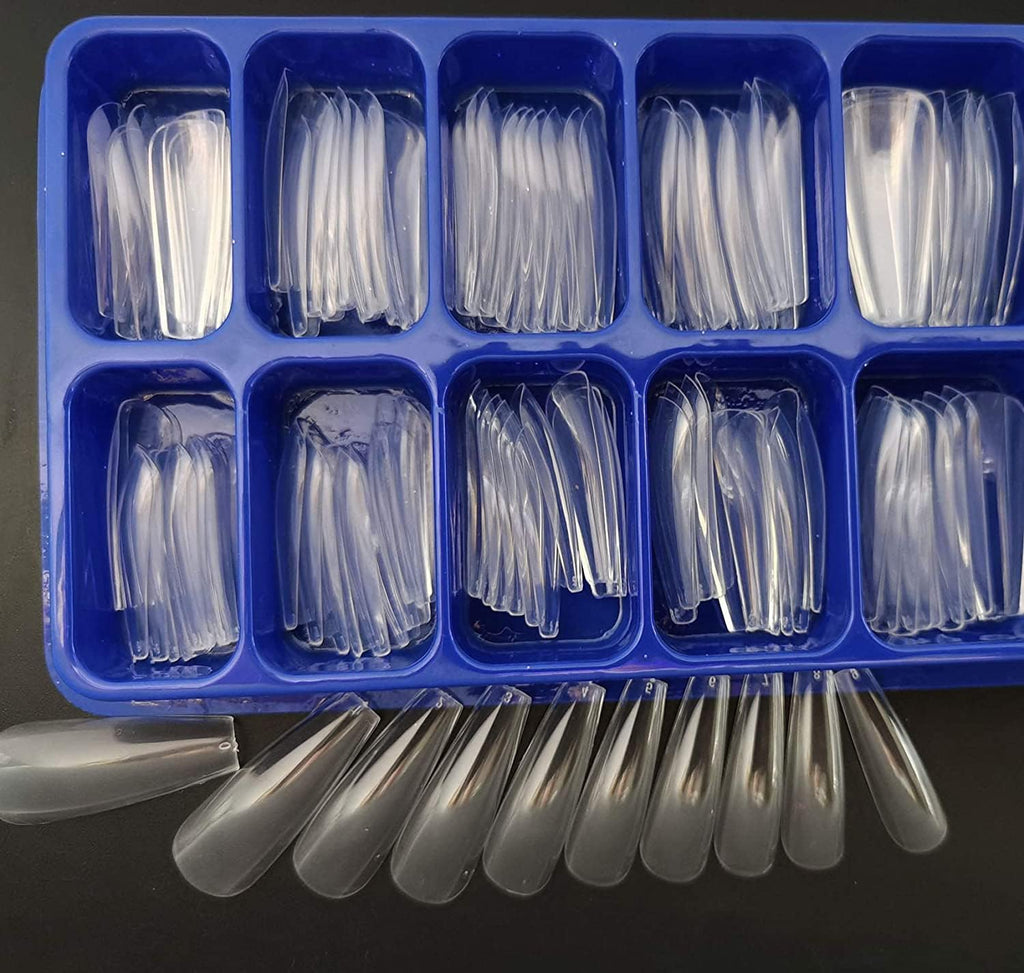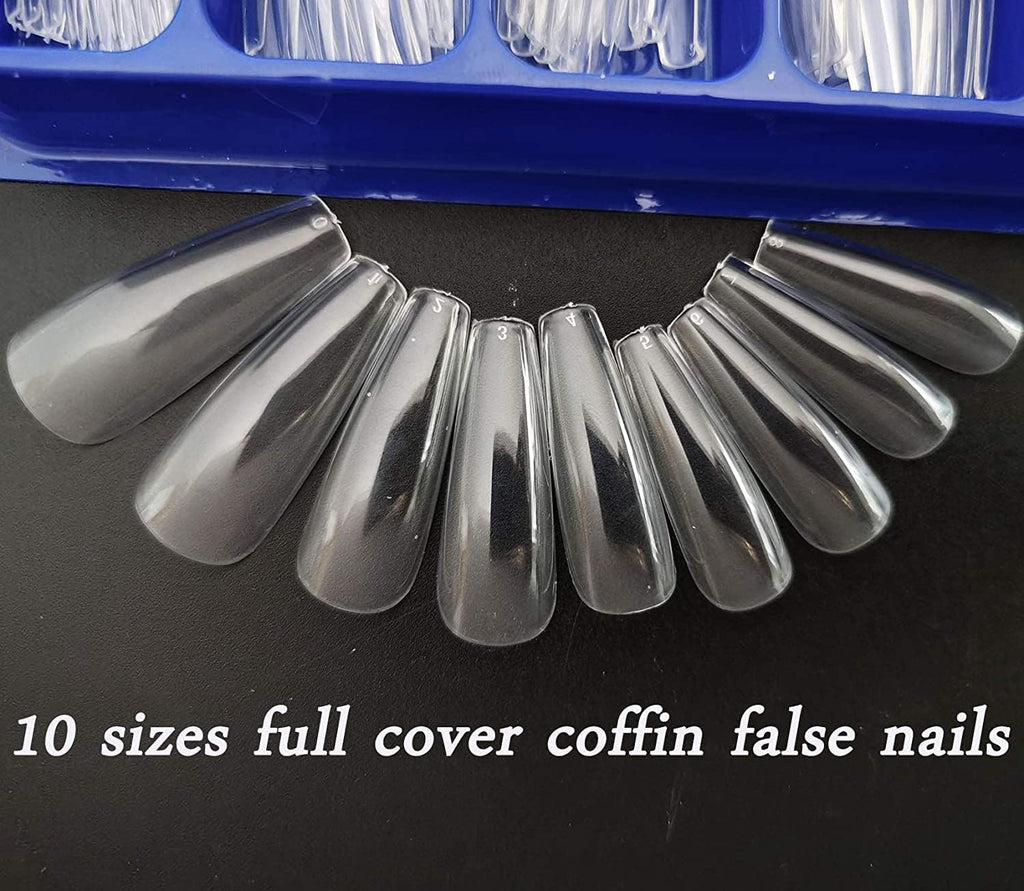 - Full-covered false nail tips, 100pcs nail tips, 10 different sizes, stored in numbered case with 10 small grid.