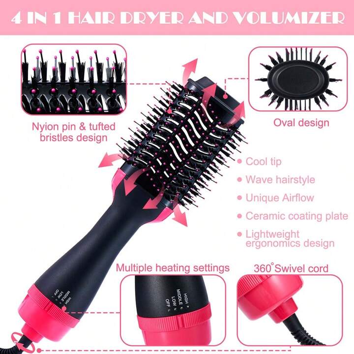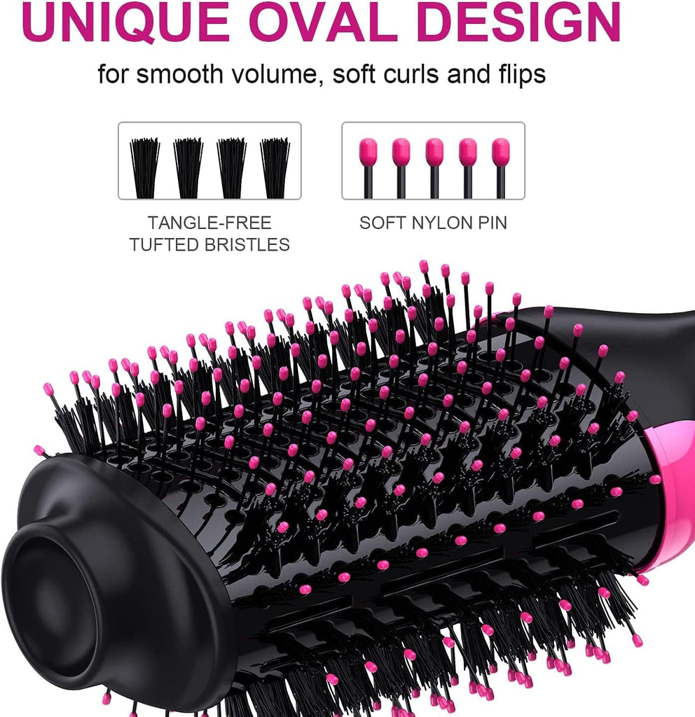 - Thanks to the nylon pin and tufted bristles, this hot air brush helps to create the best tension and control for styling most hair types while gently massaging the head. It prevent hair tangles and help your hair become fluffier, smoother and shiner. And this lightweight Blow-dryer brushes with 360° swivel cord and oval design take away the shoulder fatigue and allow more mobility and ease.