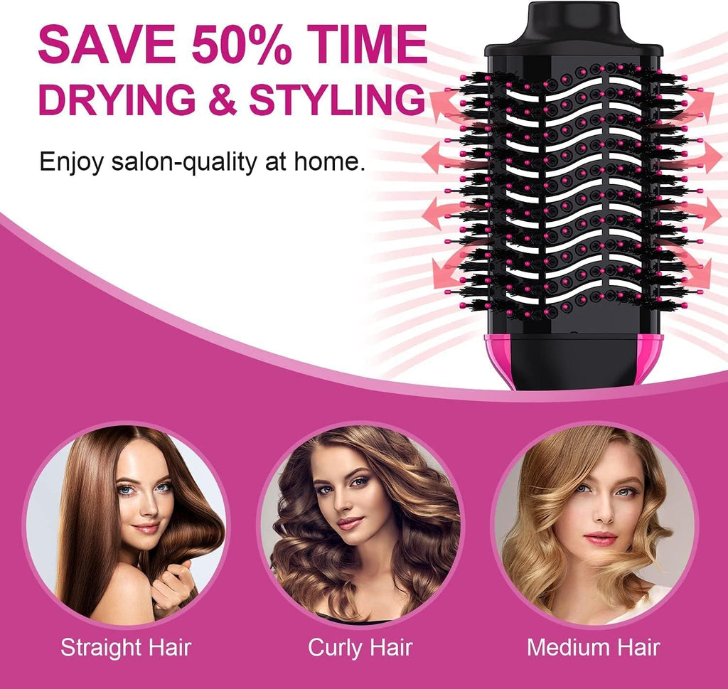 - The hair dryer brush is the perfect combination of a blow dryer, hair comb, hair curler straightener, and massage comb for a pro-level blow dry while boosting hair’s fullness, create a more natural style to stretch out the root, different from traditional hot styling to access salon-quality blowouts.
