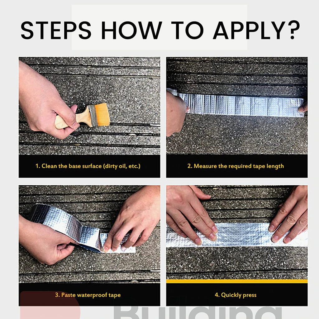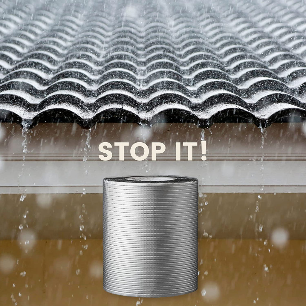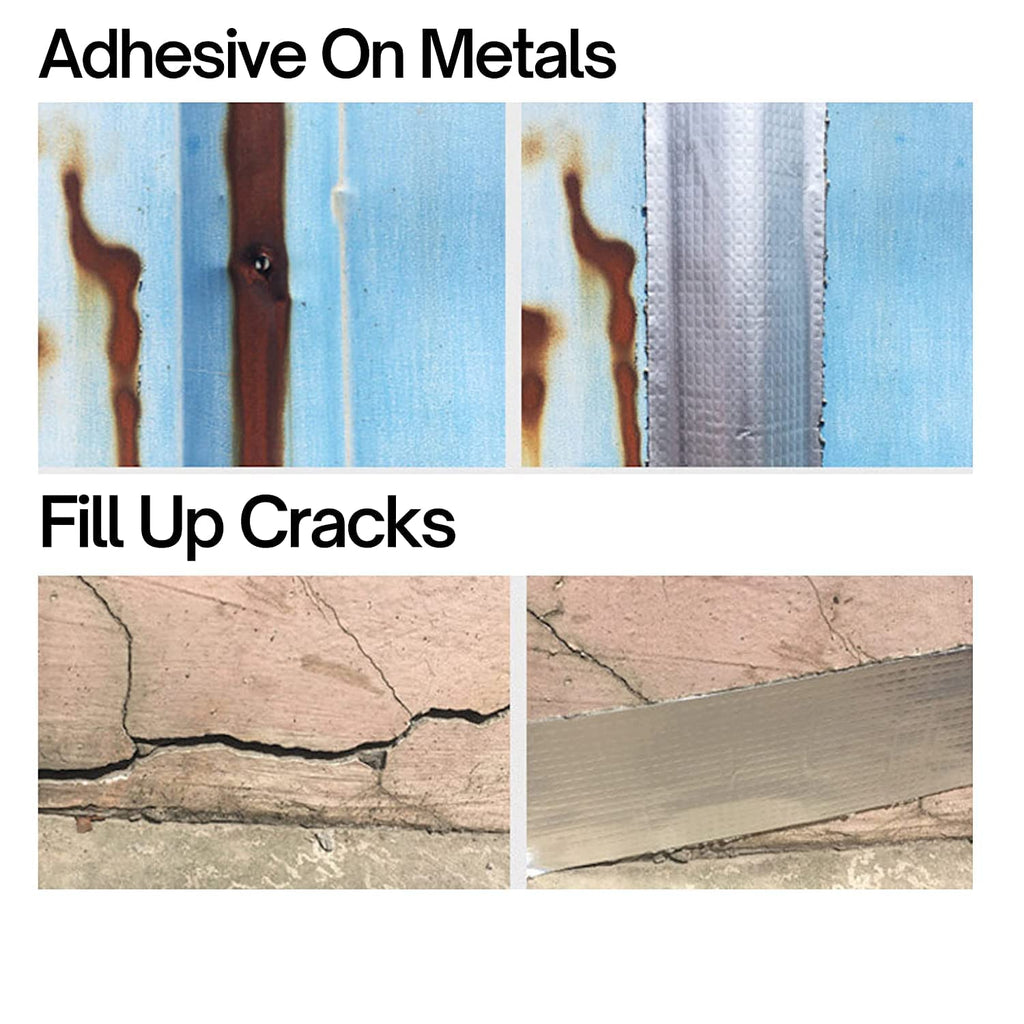 onstopbazar Super Strong Adhesive Waterproof Permanent Repair Tape Butyl Rubber Aluminum Foil Tape. It maintains good flexibility, strong adhesion, and can withstand a certain degree of displacement, and the deformation has good followability. It has weather resistance, aging resistance and water resistance, and has a seal, vibration damping and protection on the surface. Very easy to use, just remove the peeled film and seal the butyl tape anywhere you need it. This sealing tape is widely used in building roofs, surface cracks, RV repairs, windows, marine seals, glass and roof repairs. Waterproof, sealed and resistant to UV rays (daylight).Wide Range of Applications Broken deain,Tile gap,Road crack,Window edge,Iron-boron gap,Damaged container,Cracks in the exterior wall,Ground and wall joints.Multi-functional tape, easy to use. ✔Thicker tape, more viscous and longer lasting. ✔Repair wall cracks and use the roof for waterproofing. ✔The smooth surface tape has a high reflectivity and is more thermally insulated. ✔Aluminum foil material, not afraid of scratching, anti-friction, high temperature resistance.