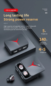 The M90 Pro TWS Earbuds provide rich gaming sound. These headphones include superior game audio technologies that deliver crystal-clear sound and powerful bass for an engaging playing experience.