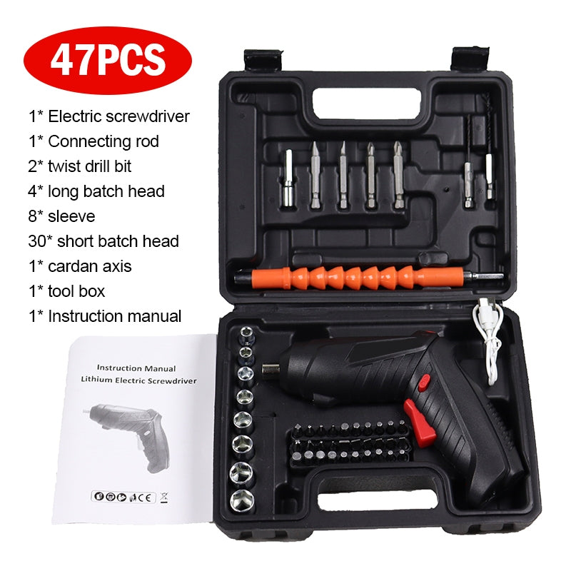 • 【47 in 1】 Package List: 1 x electric screwdriver, 1 x magnetic soft shaft, 29 x 25mm screwdriver bit, 4 x 50mm screwdriver bit, 8 x socket wrench, 2 x drill bit, 1 x screwdriver bit extension rod, 1 x BMC case , 1 x user manual, 1 x Charging cable;drill crew driver allows you to tighten easily in tight spaces and can meet any production task