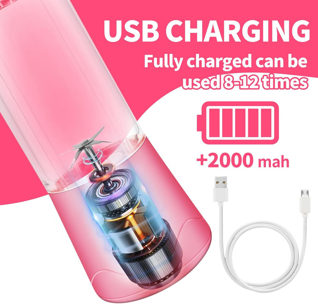 • 🍓𝗨𝗦𝗕 𝗥𝗲𝗰𝗵𝗮𝗿𝗴𝗲𝗮𝗯𝗹𝗲 𝗣𝗼𝗿𝘁𝗮𝗯𝗹𝗲 𝗕𝗹𝗲𝗻𝗱𝗲𝗿:Portable blender with built-in rechargeable battery, charge through the USB port for 1-3 hours, making it easy for you to use in the gym, car or outdoor activities, personal blender can be used 5-6 times each time the charge is completed.