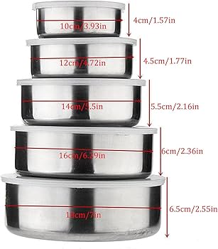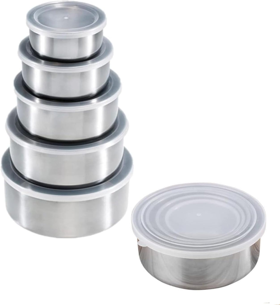- High-quality stainless steel food containers can nest for easy storage. Five different sizes mean you'll be prepared in an instant for whatever occasions