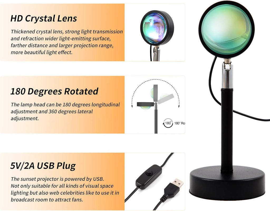 • 💕【Service Guarantee All Sunset Projection Lamp go through rigorous inspection and testing to ensure all customers receive perfect quality products. Not 100% satisfied, please contact us directly (even after the amazon return window), we will provide you an unconditional replacement or refund.