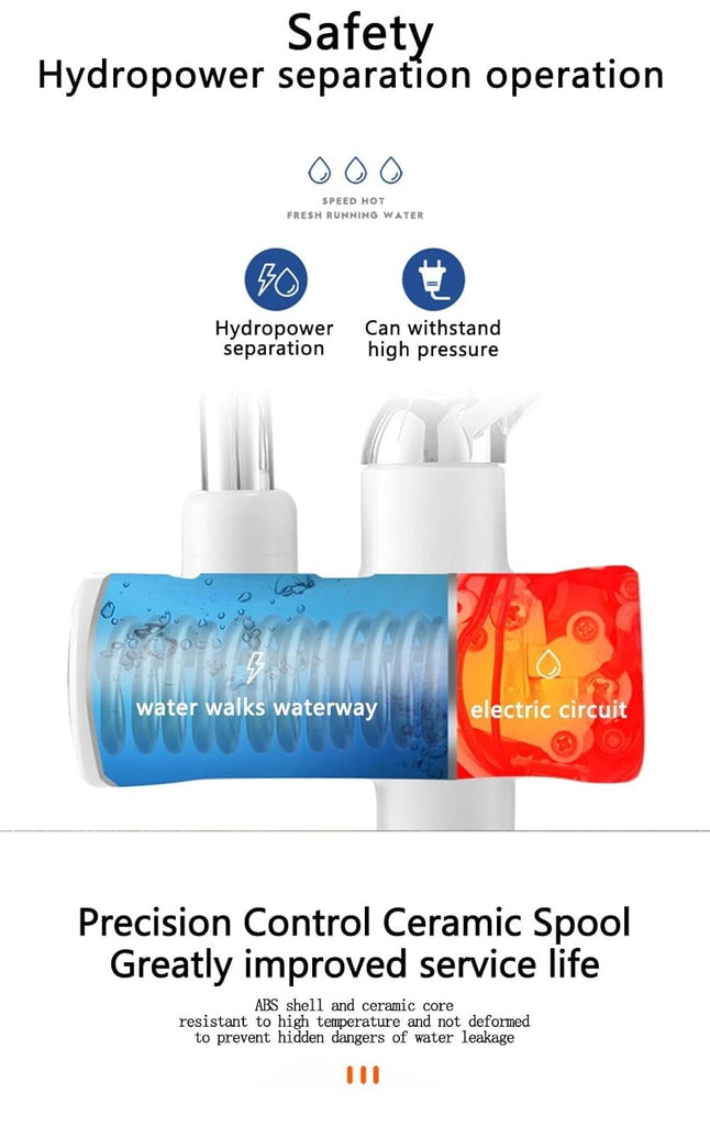 ·Only 3-5 seconds, the hot water can be used, Hot water is available any time without preheating. the water temperature starts from your normal weather temperature where you exist like your environment temperature is 25 degree it will start from here and can go to maximum up to 65 degrees
