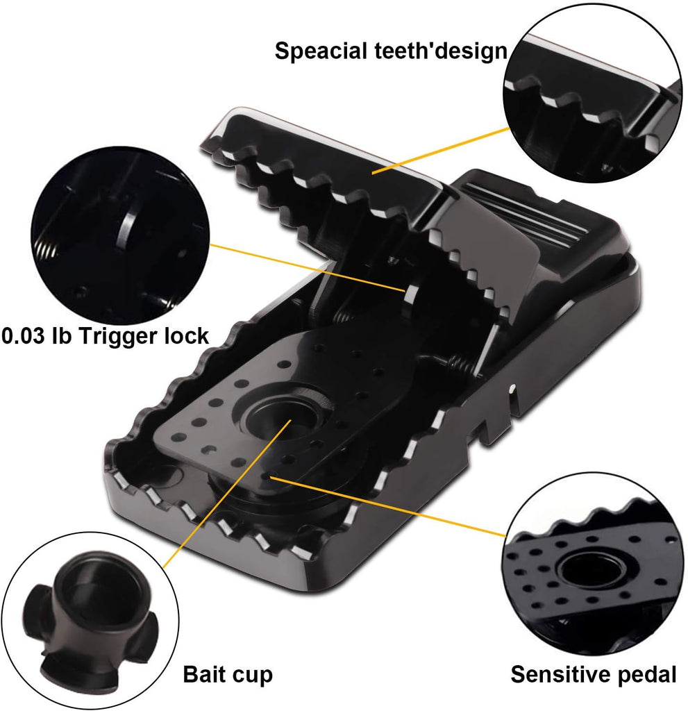 - Quick Kill & Sanitary: Powerful capturing spring and sensitive teeth design, this smart mouse trap can quick kill the mice/mouse rats with no blood, no mess, quite humane.