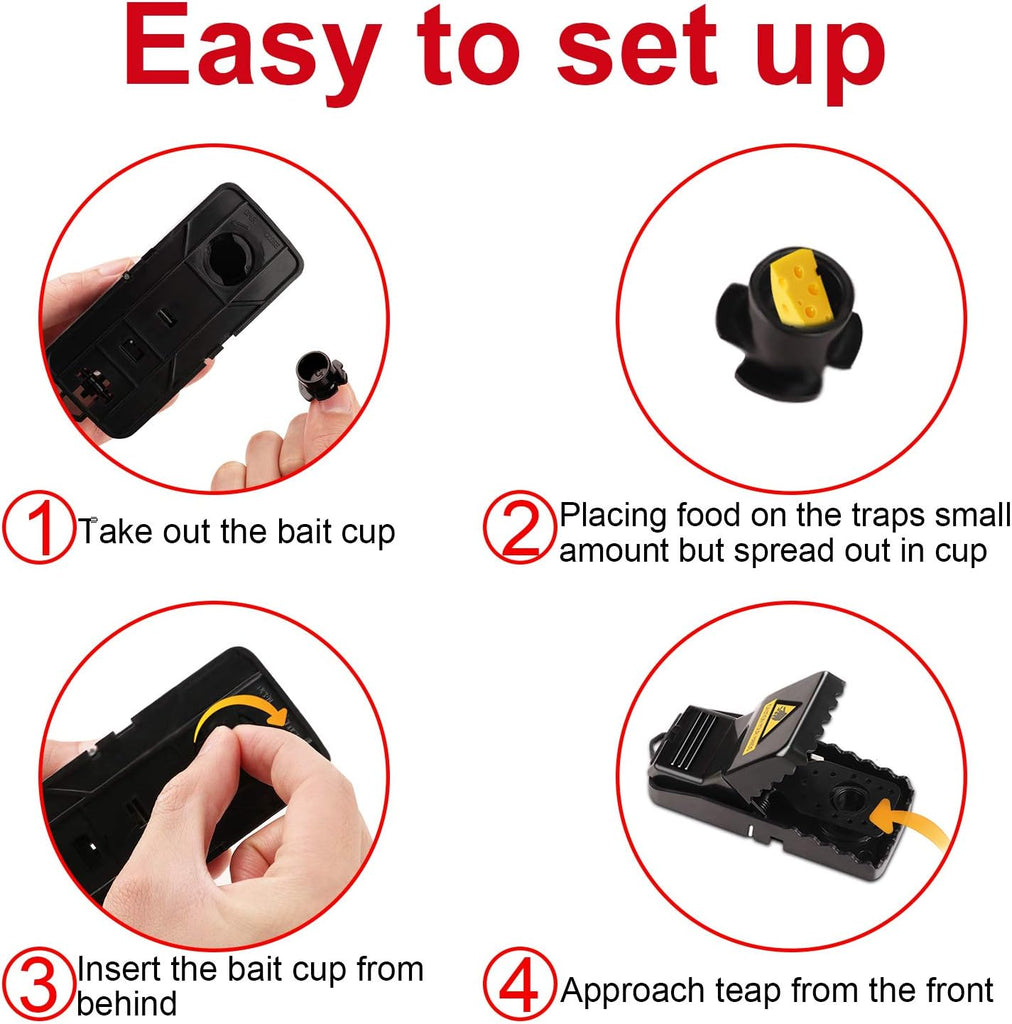 - Easy to Set and Bait: With removable bait cup design, just simply put bait in the mouse trap and press down the trigger, no more worrying snap fingers.